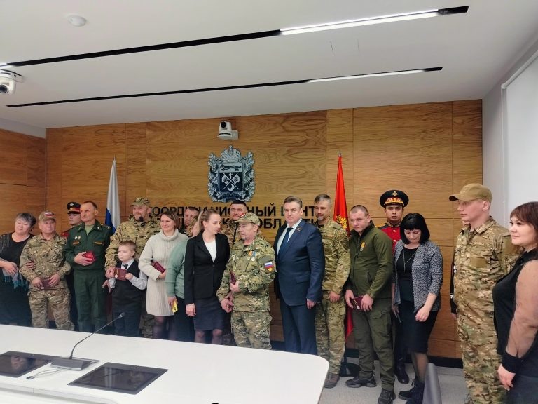В правительстве Оренбургской области состоялось вручение государственных наград Луганской Народной Республики. Медали добровольцам Оренбургского казачьего батальона БАРС-6 «Форштадт» вручил вице-губернатор Дмитрий Кулагин. Казаки всегда достойно исполняли свой патриотический долг. От имени губернатора области Евгения Солнцева благодарю вас за верность традициям Оренбургского казачества, — обратился к бойцам Кулагин. Указом главы ЛНР Леонида Пасечника, девять добровольцев были удостоены медалей «За боевые заслуги», «За верность долгу», «За Веру и волю» и «За отвагу», сообщили в пресс-службе Первого отдела ОКВ. Поздравить бойцов пришли атаман Первого отдела ОКВ Сергей Слепов, а также родные и близкие казаков. Напомним, с начала спецоперации в зоне боевых действий отслужили более 1800 казаков из Оренбургской области. Многие из них получили государственные награды и наград ЛНР и ДНР. Фото: Первый отдел ОКВ