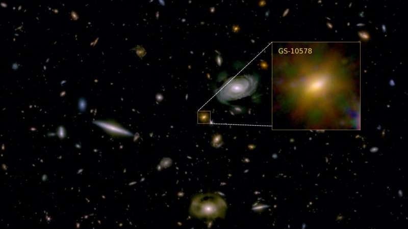 В молодой Вселенной, когда ей было всего около трех миллиардов лет (сейчас — почти 14), существовала огромная галактика. В ней кипела жизнь: рождались звезды, накапливалась масса, формировались спиральные рукава. А потом всё остановилось. Не в результате катастрофы, не от столкновения с соседом — просто звездная фабрика закрылась. Навсегда. Астрономы из Кембриджского университета изучили этот объект, известный как GS-10578, и восстановили картину его медленного угасания. Галактику неофициально назвали «Пабло» — в честь ученого, который первым детально описал её. Для столь раннего периода Вселенная GS-10578 — настоящий гигант. Её масса превышает солнечную примерно в 200 миллиардов раз. Основная часть звёзд здесь сформировалась в относительно короткий промежуток — между 12,5 и 11,5 миллиардами лет назад. А потом процесс прекратился. Почему? Ведь галактика была ещё молода, ресурсы должны были оставаться. Но звёздные ясли опустели. Чтобы разобраться, учёные применили тяжёлую артиллерию: ко