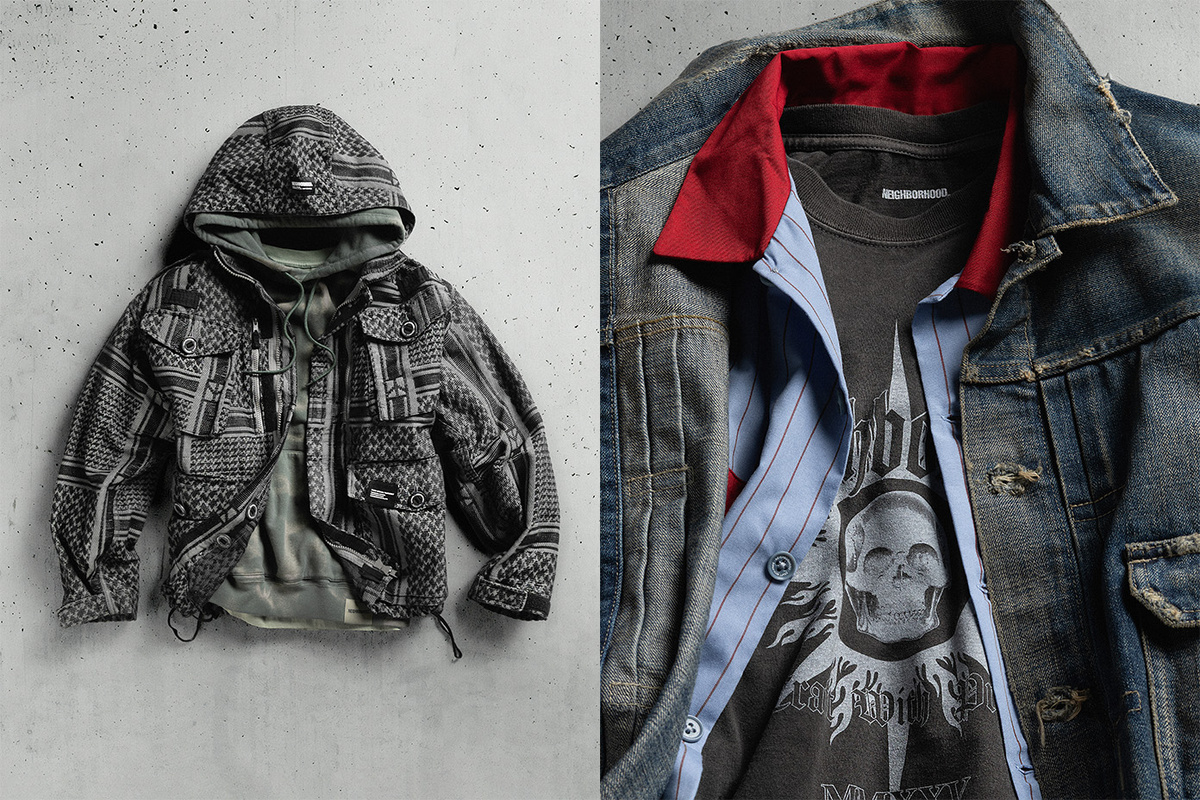 Neighborhood появился в 1994 году в Харадзюку, когда Синсукэ Такизава запустил марку на пересечении мотоциклетной среды и уличного протеста Токио. В основе идеи лежит не образ «бренда про стиль», а ясная формула базовой одежды, которая пропускает через себя элементы байкерской экипировки, военной формы, аутдора и традиционной классики, сохраняя японскую точность сборки. Популярность пришла не через громкие жесты, а через устойчивое позиционирование вещей, где сезонные темы остаются привязаны к исходным данным. Среда, в которой марка закрепилась, связана с поколением, где бренды строились вокруг субкультур, а не вокруг показов. В таком контексте рядом часто называют A Bathing Ape, с которым совпадают и временная точка старта, и общий токийский фундамент, а также фигуры Хироси Фудзивары и Дзюна Такахаси, формировавшие язык японского уличного дизайна девяностых. На уровне совместных выпусков Neighborhood давно работает сериями и регулярно выбирает партнёров из близкого поля, от крупных сп