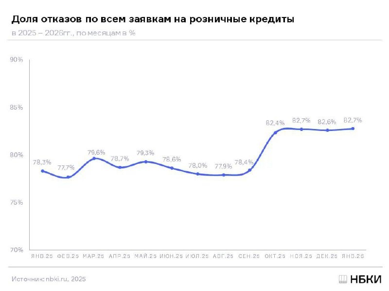 ❌Банки отказывают в кредитах 8 из 10 россиян: доля отказов достигла 82,7
