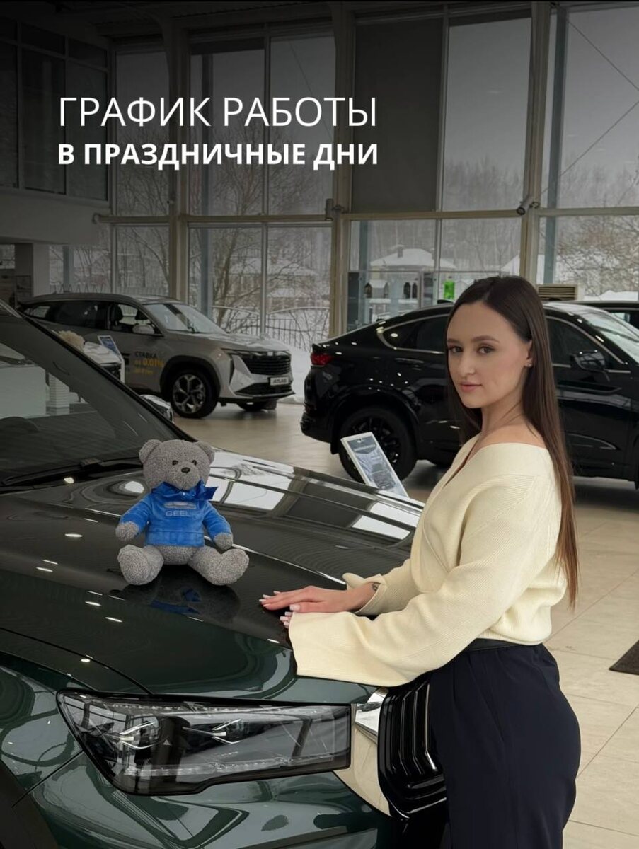 ! В праздничные дни работаем в обычном режиме, без изменений в графике 💫 🛠 Сервисный центр — с 8:00 до 20:00 🚗 Отдел продаж — с 9:00 до 20:00 Хотите посмотреть автомобиль, пройти тест-драйв или записаться на сервис — приезжайте, мы на месте 😉 📲 Записывайтесь заранее — будем рады встрече👇 ☑️ Сервис Geely: vk.cc/ccSBum ☑️ Запись на тест-драйв: vk.cc/cfb2UJ