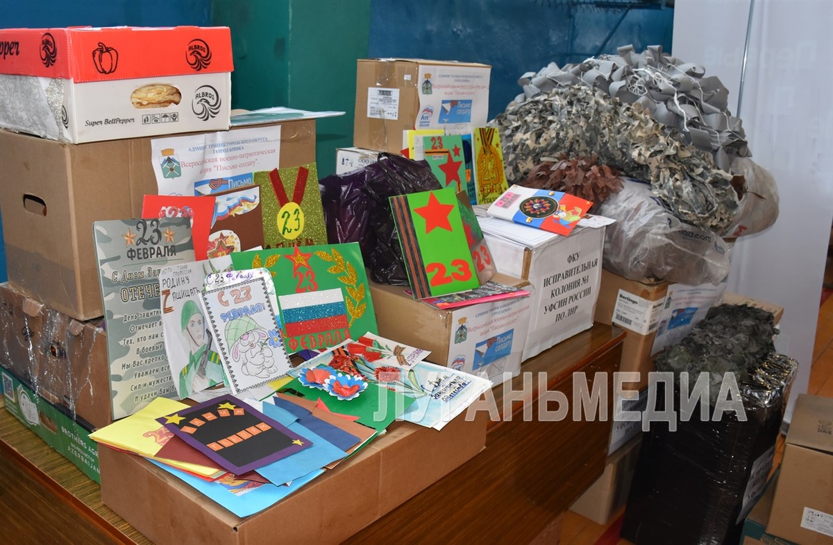В рамках акции «Письмо солдату» школьники и воспитанники детских садов Брянки написали защитникам письма и нарисовали поздравительные открытки. Активисты местного отделения партии «Единая Россия» и предприниматели передали вкусную выпечку, в том числе блины к Масленице. Сотрудники ФКУ ИК-1 УФСИН России по ЛНР – перевязочные материалы, антисептические средства, термосы, тельняшки, фонарики. Также в акции принял участие регион-шеф Брянки. Неравнодушные жители Брянской области собрали для военнослужащих теплые вещи, тактическую одежду, чай и сладкие угощения. Волонтеры муниципального Центра по развитию добровольчества собственноручно изготовили для защитников 5 маскировочных сетей и порядка 80 блиндажных свечей. – Поздравляем всех мужчин, кто сейчас на передовой, а также тех, кто несет вахту в тылу, с грядущим Днем защитника Отечества! Желаем силы духа, здоровья и скорейшей Великой Победы! – пожелала председатель Совета городского округа город Брянка Наталья Волошина.