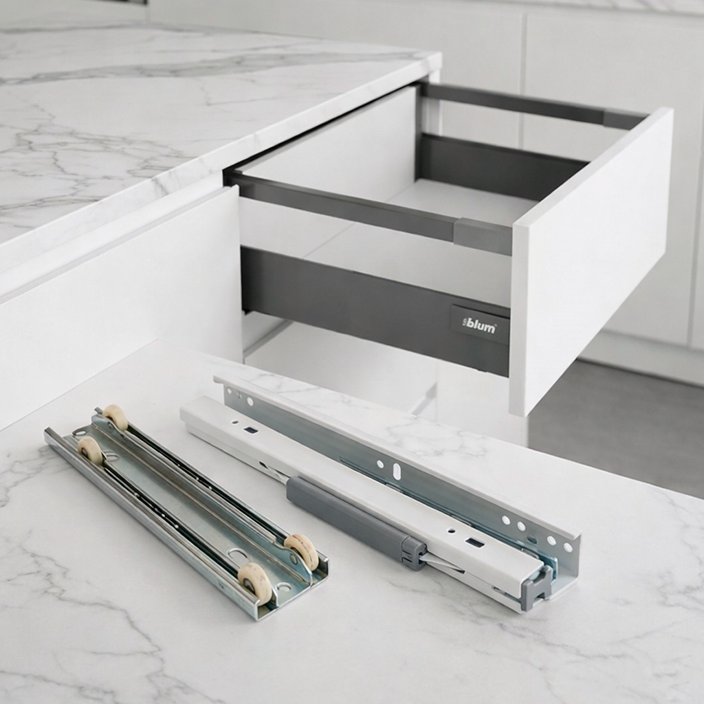 Выдвижные ящики для кухни — это настоящие рабочие лошадки любого гарнитура. В них размещают столовые приборы, кастрюли, сковороды, продукты питания и различные контейнеры. Статистика показывает, что средний кухонный ящик открывается от 8 до 15 раз ежедневно. Направляющие системы принимают на себя весь этот интенсивный поток нагрузок, и именно от их надежности зависит долговечность всего гарнитура.
