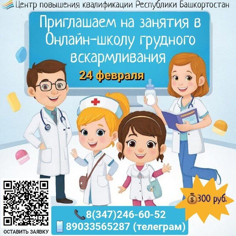 ! 📚Приглашаем вас пройти обучение по актуальной теме: 📅24 февраля - Механизм кормления из груди. Оценка кормления из груди 🕟Время проведения занятий: 16:30 ч – 18:05 ч. 🎓Целевая аудитория: медицинские работники со средним профессиональным образованием по специальностям: «Сестринское дело в педиатрии», «Акушерское дело», «Лечебное дело», «Общая практика», «Сестринское дело». 💻Занятия проходят в дистанционном формате на платформе «PRUFFME». 💰Стоимость одного занятия: 300 руб. 📃По итогам обучения слушателям выдается электронный сертификат о прохождении онлайн-школы специалиста со средним профессиональным образованием. 📞Подробности можно узнать по телефону: 8(347)246-60-52, 89033565287 (телеграм). ➡️Для регистрации пройдите по ссылке: https://clck.ru/3EUon9