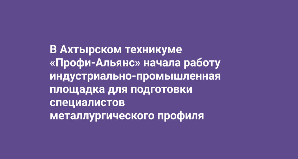 В Ахтырском техникуме «Профи-Альянс» начала работу индустриально-промышленная площадка для подготовки специалистов металлургического профиля