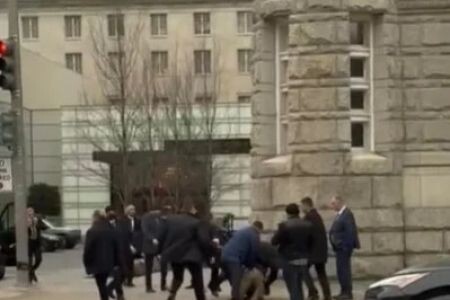 АрмИнфо. Охрана президента Азербайджана Ильхама Алиева избила участников протестной акции в Вашингтоне. Группа азербайджанцев собрались у отеля, где остановилась делегация Алиева, чтобы выразить свое несогласие с политикой, проводимой бессменным лидером Азербайджана. Кадры избиения охранниками Алиева демонстрантов распространило на своей странице в Facebook оппозиционное издание "Азадлыг". Видео очень быстро стало вирусным. Отметим, что это не первый такой случай. В мае 2017 года во время визита президента Турции Реджепа Тайипа Эрдогана в Вашингтон его охранники избили демонстрантов, выступающих против политики Эрдогана. Тогда 9 человек пострадали.