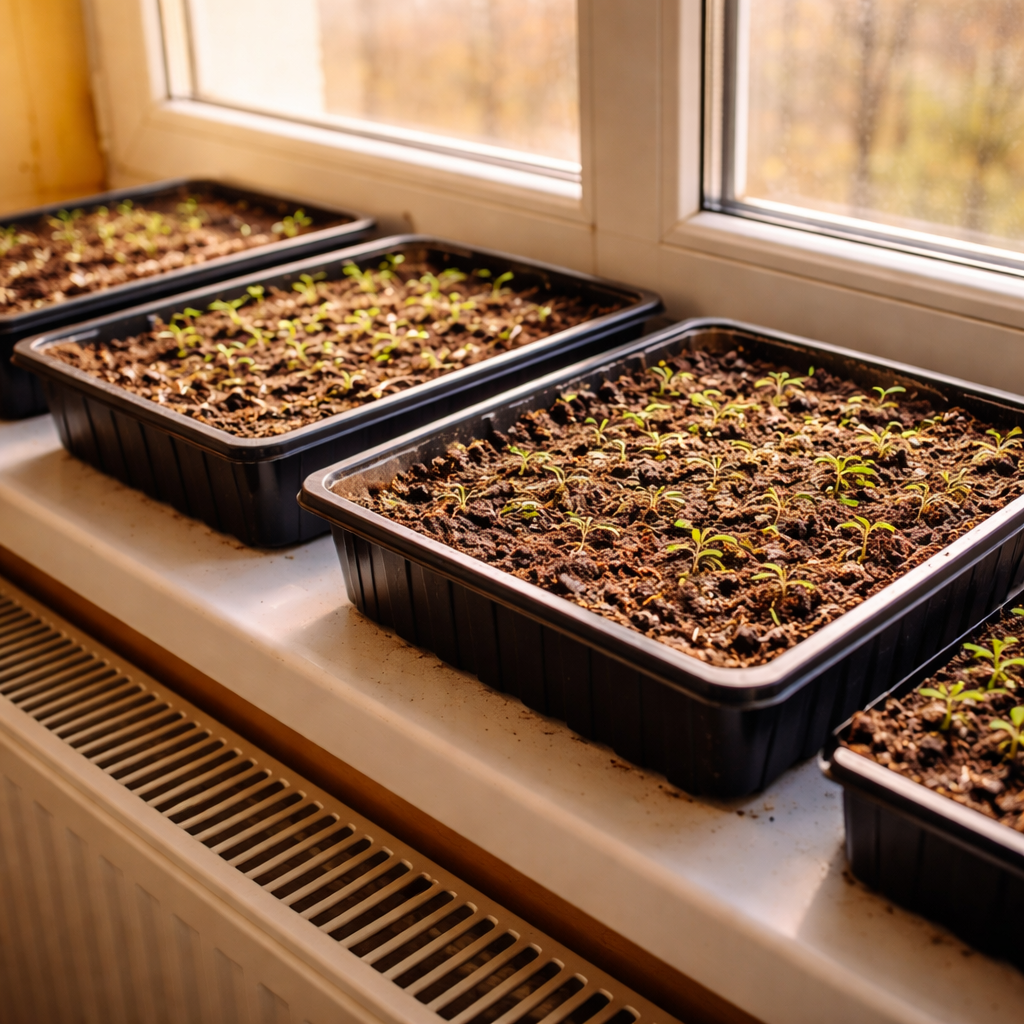 Каждую весну, когда начинаются посевы, хочется создать «самые лучшие условия». Тепло, светло, никаких сквозняков. Иногда даже кажется, что чем теплее — тем быстрее взойдут семена. Я тоже так думала. Ставила ящики ближе к батарее, выбирала самую тёплую комнату. И всходы действительно появлялись быстро. Но потом начинались странности. Со временем я поняла: слишком тёплая комната — не всегда благо для семян. При высокой температуре (выше +24…+26 °C) семена многих культур прорастают быстрее. Но этот быстрый старт не всегда означает качественное развитие. Иногда я замечала: • тонкие, вытянутые ростки