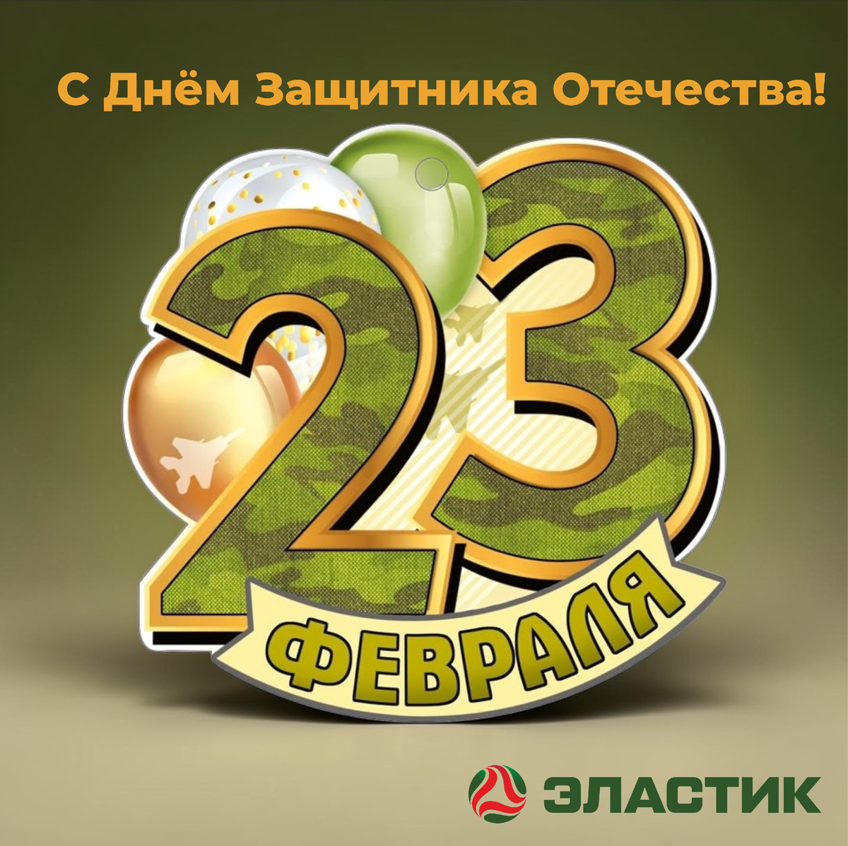 Дорогие защитники! Примите искренние поздравления с праздником мужества, воинской доблести, чести и верности — Днём защитника Отечества! Мы по традиции поздравляем в этот день всех мужчин, ведь настоящий мужчина — всегда защитник своей семьи, малой родины, страны. От всей души желаем вам, дорогие мужчины, неиссякаемой энергии, жизненного оптимизма, благополучия, стабильности и крепкого здоровья на долгие годы! Счастья вам и вашим семьям! С уважением, команда Завода Эластик!