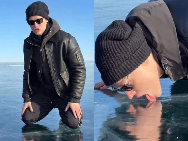 Telegram-канал SHAMAN'a взорвал информационное пространство видео с пометкой «18+». На кадрах артист встает на колени посреди замерзшего Байкала и с чувством исполненного долга несколько раз проводит языком по льду.