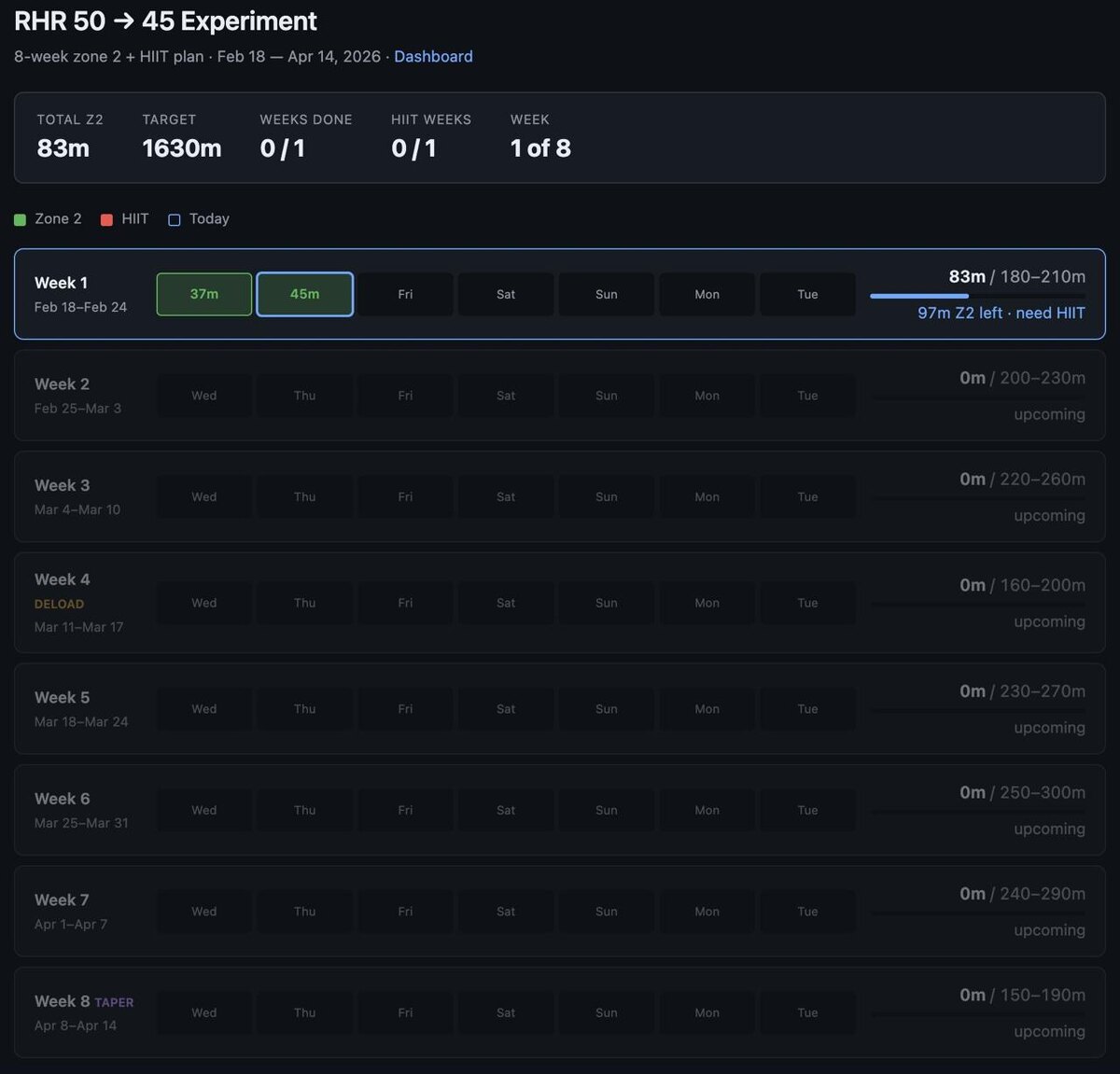 : Очень интересно наблюдать, как будет выглядеть эпоха по-настоящему персонального софта. Сегодняшний пример. Я решил провести эксперимент - снизить пульс в покое с 50 до 45 за 8 недель. План простой - больше минут в Zone 2 и один HIIT в неделю. Через час у меня уже был полностью кастомный дашборд. Claude: - разобрался с облачным API беговой дорожки - вытащил данные - обработал их - сделал веб-интерфейс Да, пришлось поправить баги - перепутал метры и мили, ошибся с календарём. Но главное - всё это заняло 1 час. Два года назад заняло бы около 10. И вот здесь самое интересное. Для такой задачи не должно существовать отдельного приложения. Это 300 строк кода, которые LLM может собрать за секунды. Идея App Store - искать, скачивать и подстраиваться под чужую логику - начинает выглядеть устаревшей. Софт будущего - это приложения, которые создаются под конкретного человека и конкретную задачу. Но есть проблема.Индустрия всё ещё не AI-native. Моя беговая дорожка - это просто сенсо