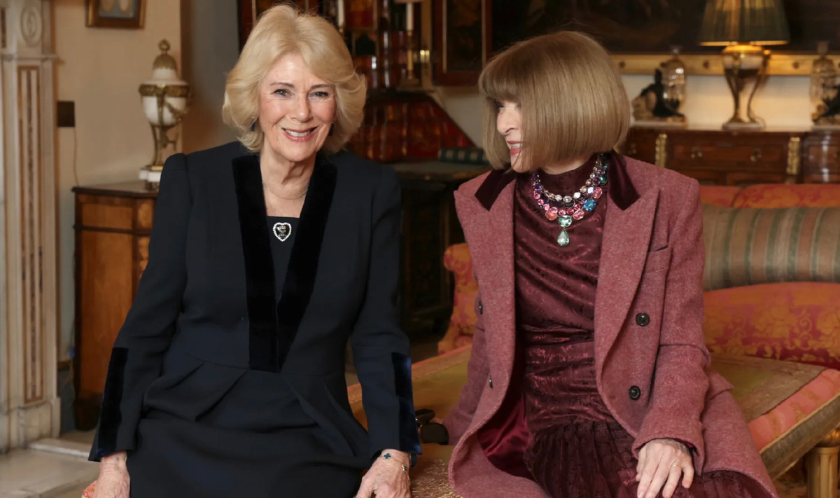 В Лондоне состоялась встреча, которую уже называют символичной. В резиденции Clarence House королева-консорт Камилла принимала экс-главного редактора американского Vogue Анна Винтур в первый день London Fashion Week. Формально речь шла о поддержке британской моды и просветительских инициативах. Фактически же публика увидела на одном кадре две модели женской элегантности. Камилла выбрала черное платье класического кроя и дополнила его брошью в форме сердца. Образ аккуратный, выверенный, полностью соответствующий королевскому протоколу. В нем нет ошибки. Но в нем нет ничего что хочется рассматривать. Это стиль, который не спорит, не экспериментирует и не стремится стать ориентиром. Анна Винтур вышла в теплых благородных оттенках, где карамель и мягкий бордо создавали сложную, дорогую палитру. Ее силуэт всегда безошибочно узнаваем. Правильная длина, точная посадка, работа с фактурой. Она не демонстрирует тренд, она его формулирует. И именно поэтому ее образы становятся ориентиром для мил