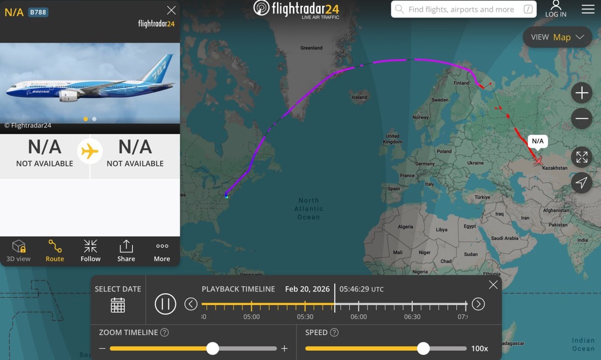 Сервис Flightradar не отображает номер и принадлежность борта. Boeing-787 произвёл посадку в одном из аэропортов Казахстана. ❄ «Арктический Обозреватель»