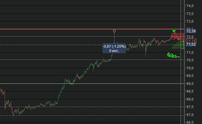 Кто в Шорт по нефти зашел, первая цель тех отката 71.5