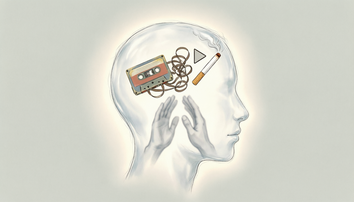 Вы когда-нибудь ловили себя на мысли: «Без сигареты я не соберусь», «После работы надо расслабиться — только сигарета помогает», «Если не закурю, сорвусь на коллегах»? Знакомо? Это не просто слова. Это программы, которые сидят глубоко в голове и управляют поведением помимо нашей воли. Я сам так думал. Десять лет. Пока однажды не понял: эти убеждения — просто записи на старой кассете, которые крутятся в голове снова и снова. Но их можно перезаписать. Никотин даёт временный выброс дофамина. Мозг запоминает: в stressful ситуации помогло — значит, сигарета полезный инструмент. Формируется убеждение: «Я справляюсь со стрессом только с сигаретой». Или «Сигарета делает меня умнее/спокойнее/общительнее». Проблема в том, что эти мысли живут в подсознании. Мы их не оспариваем, они работают фоном. И когда пытаемся бросить, включается внутренний голос: «Но как же я буду работать/отдыхать/общаться без этого?» И мы срываемся. Возьмём классический приём из НЛП — «Разрыв шаблона». Он помогает вытащить