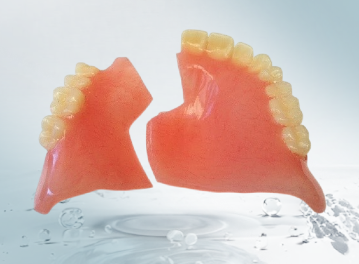 o Трещина или перелом базиса (пластиковой основы). Специалист точно совмещает обломки на гипсовой модели и склеивает их специальной стоматологической смолой, после чего тщательно полирует место ремонта. Эта работа часто выполняется в течение нескольких часов.