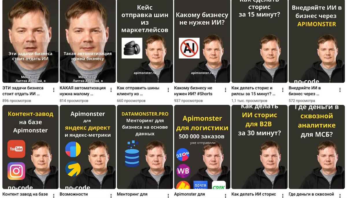 Поставил себе цель выйти на 1-2 шортса в день При трудозатратах на шортс в 15 минут - можно не напрягаясь вещать на любые темы и рассказывать про каждую фичу в продуктах, а там что залетит Среднее число просмотров - 700/800. Немного, но и трудозатрат немного. Берем количеством. ИИ шортсы могут набирать больше просмотров чем снятые «органически». Если хотите также, пишите в apimonster. Подскажем как сократить время на монтаж и заливку.