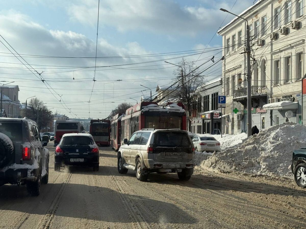 В Туле на пересечении Октябрьской и Горького оборвалась троллейбусная сеть