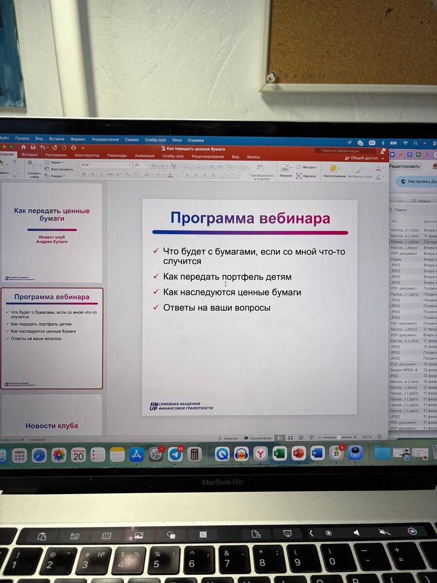 Сегодня для клуба провожу вебинар «Как передать свои ценные бумаги
