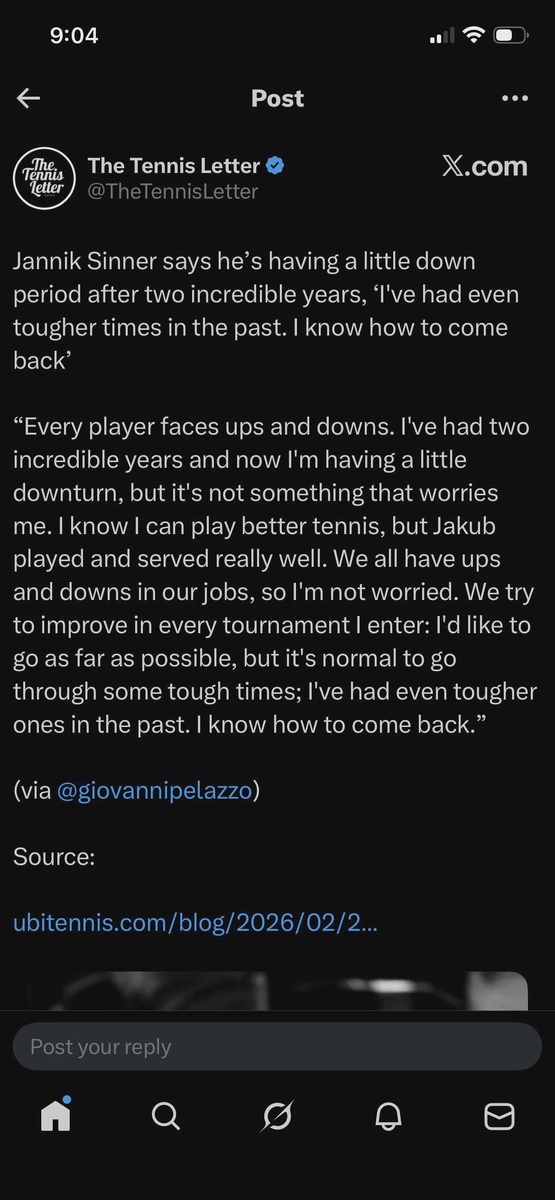 Янник Синнер о спаде в карьере после двух невероятных лет