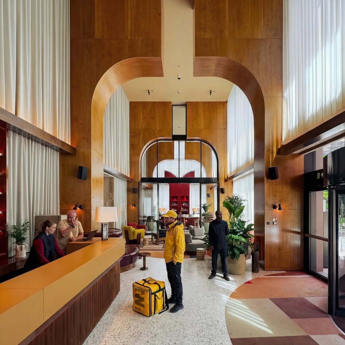 Ещё пять лет назад сама формулировка звучала бы странно: «зона для курьеров в лобби пятизвёздочного отеля».