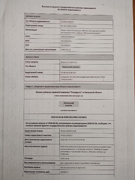 Название: Земельный участок с кадастровым номером 40:16:130100:429 площадь 1340 по адресу Калужская область, Мосальский р-н, д ПУТОГИНО