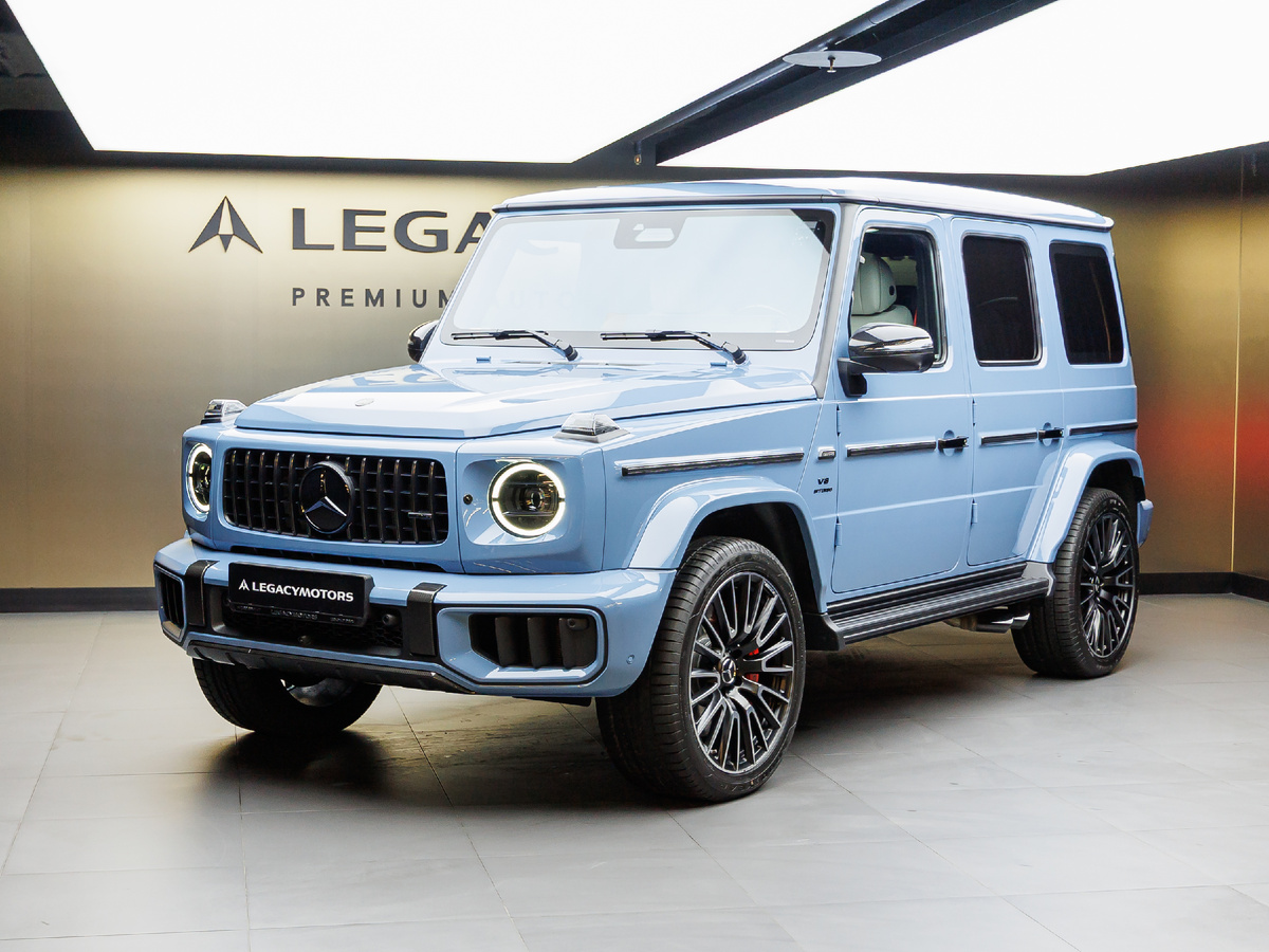 Модель: G-Класс AMG 63 Год выпуска: 2025 Цвет кузова: China Blue Голубой (934) Отделка салона: Белая платина (923) Вид топлива: Бензин Привод: Полный Двигатель: 4.0 л / 585 л.с. / Бензин4.0 л / 585 л.с. / Бензин Основные опции автомобиля: •Внешний карбон-пакет