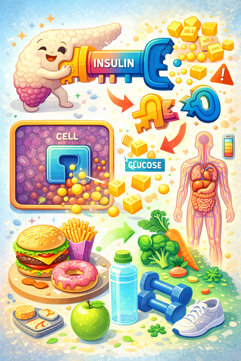 Если «ключ» работает плохо — сахар остаётся в крови, организм напрягается, появляется лишний жир и усталость.