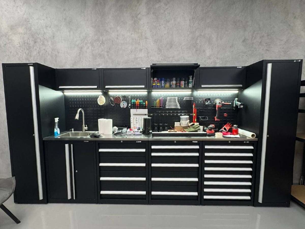 Клиент прислал фото — вот как выглядит наш комплект стеллажей в его гараже.