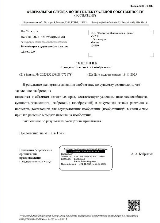 Вторым патентом, который получила наша компания стал патент на изобретение: «Система для измерения содержания массовых долей легких элементов в жидких технологических продуктах».