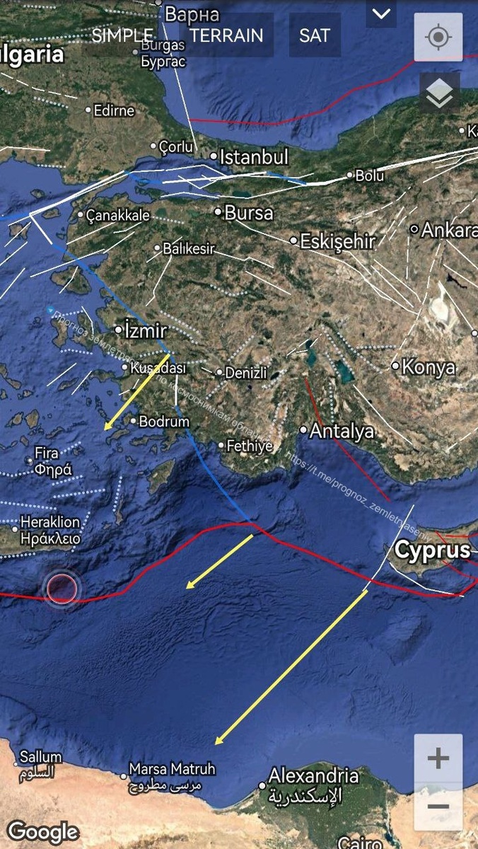 плиты. По протяженности структура тянет на максимальное значение М6.6. ===== According to the shape of the cloud structure, it looks like a tracer has turned clockwise towards Crete from the southwestern boundary of the Anatolian Plate.