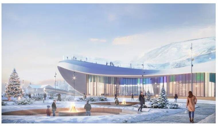 В нем откроют горнолыжную школу, прокат, кассы ski-pass, лыжехранилище с сушилкой и мастерскую. Здесь же разместят ресторан формата free-flow, магазины и детские комнаты. Здание задумали как главный маршрут для туристов — от гостиниц 3 и 4 звезды к подъемникам и зоне выката. С востока фасад будет дугообразным, а с запада центр «врежется» в склон и станет подпорной стеной. Этажность — от двух до трех уровней, с выходом к трассам с третьего этажа. Центр войдет в комплекс с отелями, магазинами, баней и общепитом. Концепция отсылает к расщелине в заснеженной горе: плавные линии кровли повторяют формы снежных карнизов и ледяных наростов. 📸 проектное бюро Markevich Подписаться | Прислать новость | Мы в MAX
