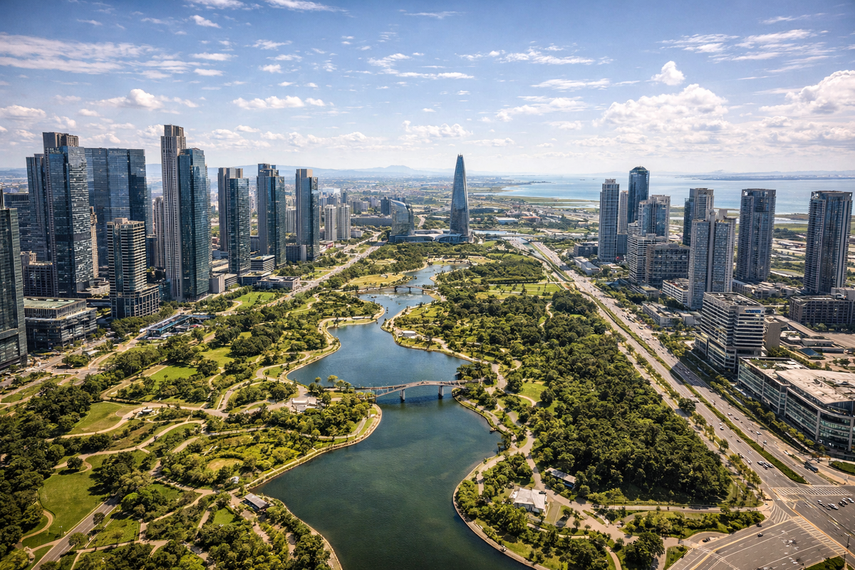 Всего за одно десятилетие на месте воды вырос современный деловой центр с небоскрёбами, парками и жилыми кварталами. Планирование велось не вокруг исторического ядра, а вокруг концепции «умного города». Инфраструктура закладывалась одновременно с фундаментами зданий. Это редкий случай, когда технологии изначально встроены в структуру города. Он задумывался как модель будущего.