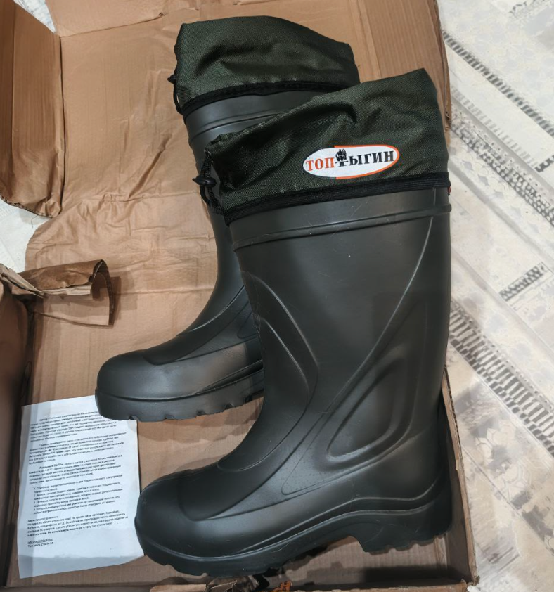 На связи канал ТРОПА! Иногда бывает так: вроде бы товар тебе и не нужен, но маркетплейс подкидывает настолько выгодное предложение, что отказаться просто невозможно. Вот и в этот раз, листая ленту предложений, я наткнулся на сапоги, от которых решил не отказываться — и не прогадал, а только выиграл. Речь идет о мужских сапогах Топтыгин — обуви, которая сейчас продается на маркетплейсах примерно от четырёх тысяч рублей. Но тут мне поступило предложение приобрести их всего за 1824 рубля! И что самое приятное — подходящий размер был в наличии. Важно отметить, что эти сапоги имеют одну особенность: они маломерят. Производитель рекомендует брать их на два размера больше своего обычного. Это важный момент, который стоит учитывать при выборе. У меня 43 размер ноги. Прочтя рекомендацию производителя и отзывы на товар, решил опираться на свой опыт, а не прислушиваться ни к производителю, ни к комментариям-отзывам на этот товар. Заказал 47 размер сапог от бренда Вездиход, сапоги сели идеально —
