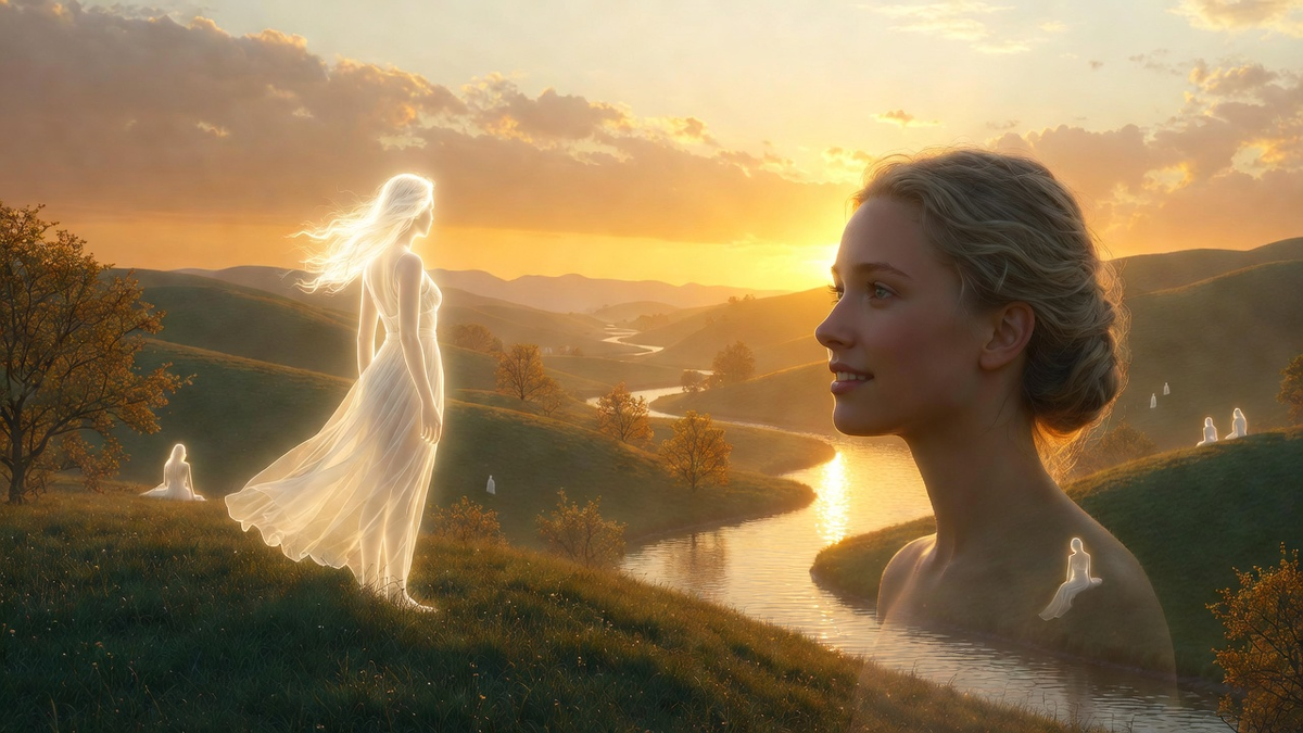 После завтрака Артём ушёл в свой кабинет — разбирать бумаги, готовить документы для передачи дома фонду. Павел устроился в гостиной с новыми красками, которые я ему купила, и рисовал что-то яркое, солнечное. А я решилась на то, что откладывала уже несколько дней — войти в «Убежище» и поговорить с Алисой. По-настоящему, спокойно, без спешки и без страха. Я подключилась к системе через планшет и надела лёгкие наушники. Вход в «Сад» теперь был защищён паролем, который знали только мы трое — я, Павел и Артём. Я ввела код и закрыла глаза. Когда я открыла их, я стояла на зелёном холме. Вокруг простирался тот самый пейзаж, который мы создали вместе с Павлом — мягкие холмы, покрытые изумрудной травой, река, текущая вдаль, деревья с золотыми листьями, шелестящими на лёгком ветру. Небо было нежно-голубым, с лёгкими облаками, похожими на перья. И посреди этого пейзажа стояла она. Алиса. Не голограмма, не лицо на экране — живая, настоящая, в лёгком белом платье, с распущенными светлыми волосами. О