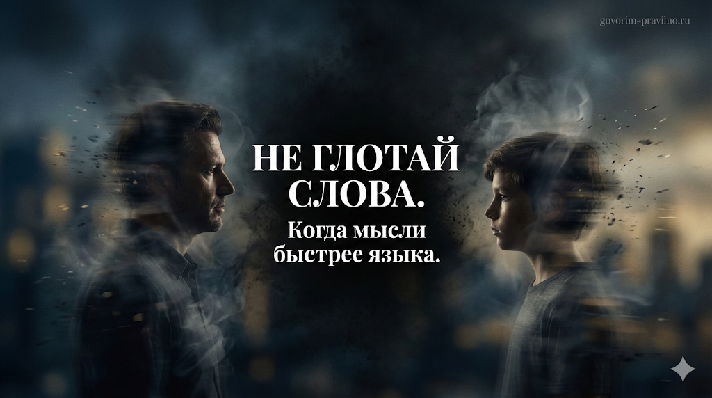 Проглатывание окончаний и скомканная речь — это нарушение темпо-ритмической организации высказывания, возникающее из-за дисбаланса между скоростью мышления, речевым выдохом и переключаемостью артикуляционных движений.