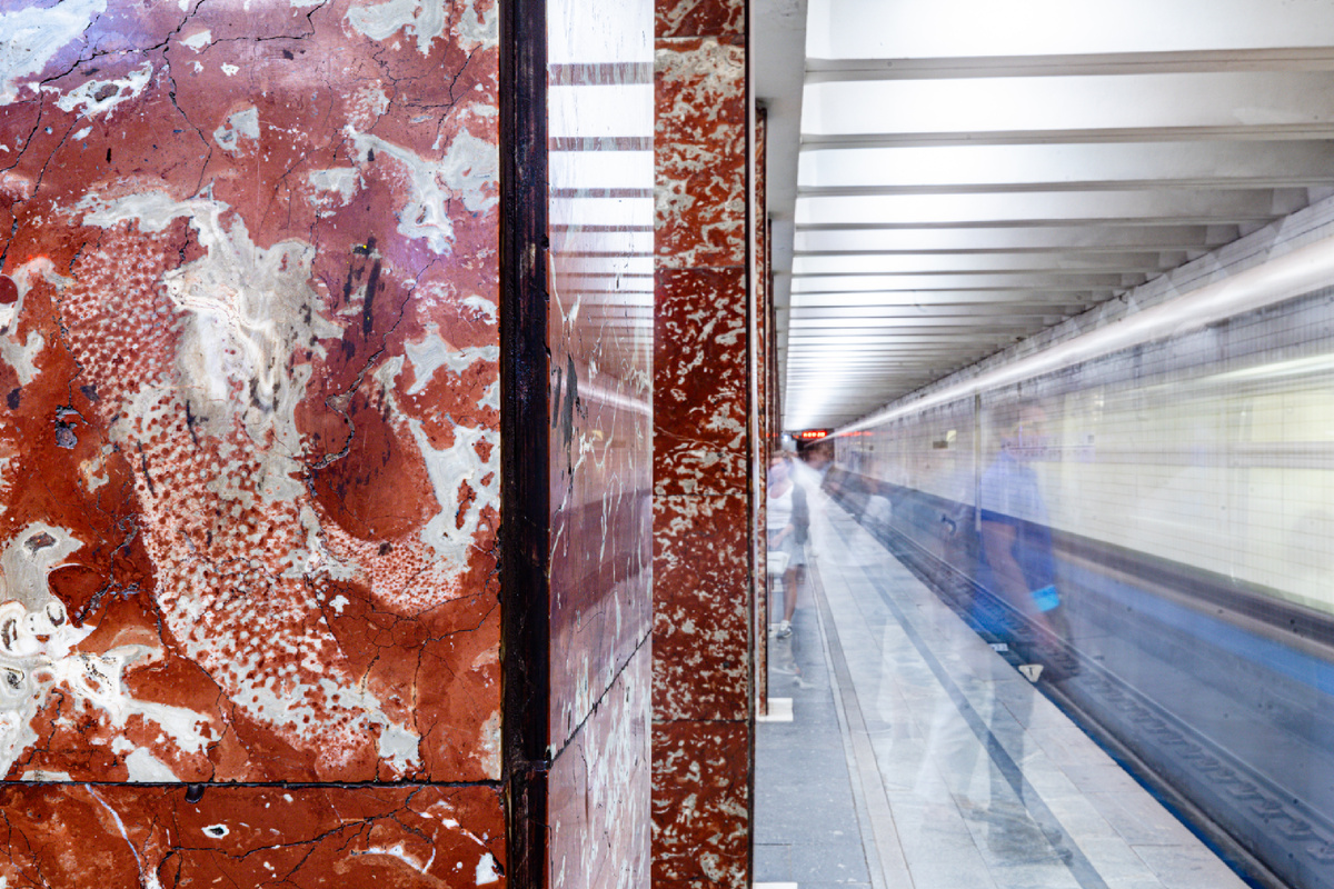 Губки – тип водных, главным образом морских, беспозвоночных животных, ведущих прикреплённый образ жизни. Первые представители появились в протерозое более 650 миллионов лет назад. Наибольшего расцвета достигли в мезозое. Современные губки появились в палеогене и в настоящее время распространены повсеместно - от прибрежных зон морей до почти максимальных глубин океана. Насчитывают около 8000 видов. Тело губки, как правило, имеет бокаловидную форму, пронизано порами, каналами и камерами, которые хорошо видны в ископаемом состоянии и в облицовке метро. Через эти поры и каналы происходит фильтрация воды. У губок нет органов. Они состоят из нескольких слоёв клеток, между которыми формируется силикатный или карбонатный скелет. На выставке представлены образцы меловых морских губок из фондов ГБМТ, найденных в Саратовской области. Большое количество морских губок юрского периода можно увидеть в облицовке стен станций Московского метро: Курская, Площадь Ильича, Краснопресненская, Добрынинская,
