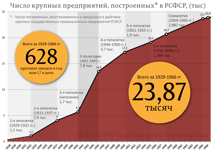 Широко распространено мнение о том, что колхозники в Советском Союзе были фактически крепостными, лишёнными свободы передвижения. Однако этот очередной черный миф рассыпается, как карточный домик при внимательном взгляде на вопрос сквозь призму реальных исторических фактов. Особенно ярко это видно на примере стремительной индустриализации страны, которую можно увидеть, как через рост числа крупных заводов: Да-да, построенных в том числе и с помощью американских специалистов, которые охотно делали это за деньги на фоне собственной Великой депрессии, поразившую не только США, но и другие развитые страны. И не менее стремительного роста промышленного производства: А как всё это можно было сделать без достаточного числа рабочих рук, как не получить их из деревни? Не марсиане же прилетели к нам помогать и тем более не десятки миллионов американских рабочих. Всё это сделали вчерашние сельские жители, миллионами переезжавших из села в стремительно растущие города, что хорошо видно на примере