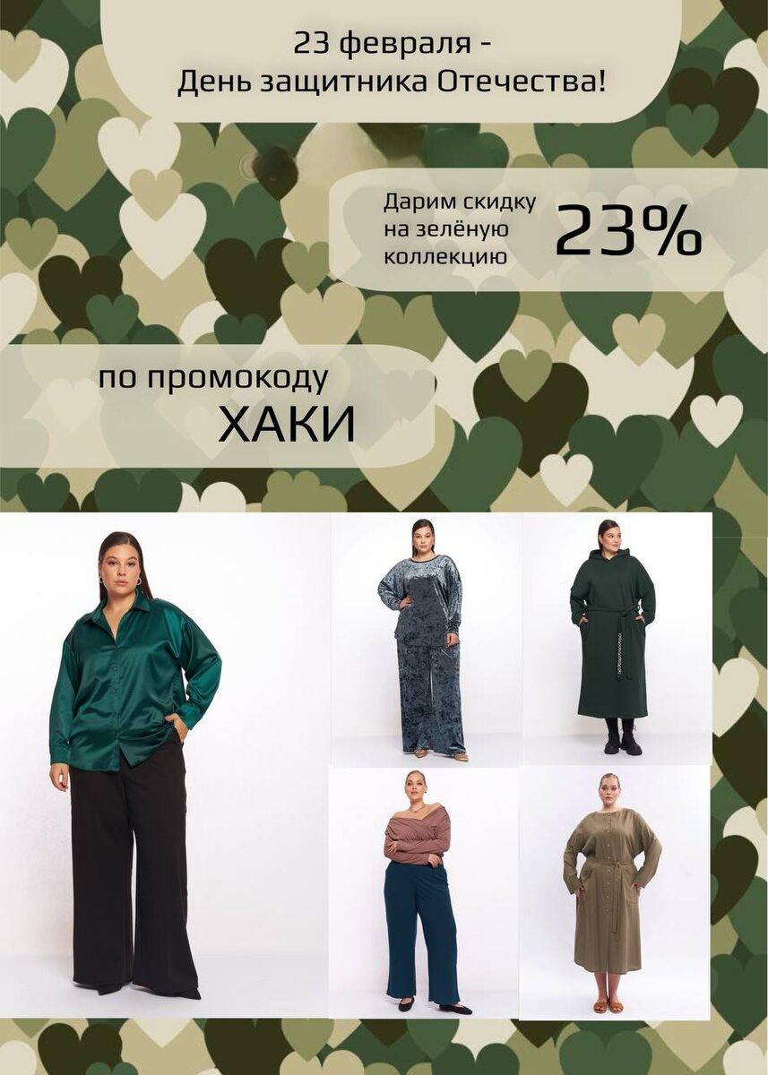 ! ...но каждый мальчик думает, что это день мальчика! Чтобы играть мальчиком, нужно играть по правилам мальчика - это и есть самая главная тайна настоящего женского счастья. А для этого нам нужен женский камуфляж - это не только косметика, прическа и идеальный маникюр, но еще и стильно подобранный образ! Сегодня Артесса подобрала для вас образы с нотками милитари, поскольку зеленый, хаки, салатовый и другие оттенки можно и нужно применять в повседневной жизни! А как ты будешь покорять сердце своего защитника?💞 🎁Не смотря на то, что праздник не у девочек - мы дарим вам подарок! Бери промокод с картинки и переходи скорее на сайт! ARTESSA.RU - зеленая подборка 🤳Если у Вас остались вопросы - связывайтесь с нашим менеджером!