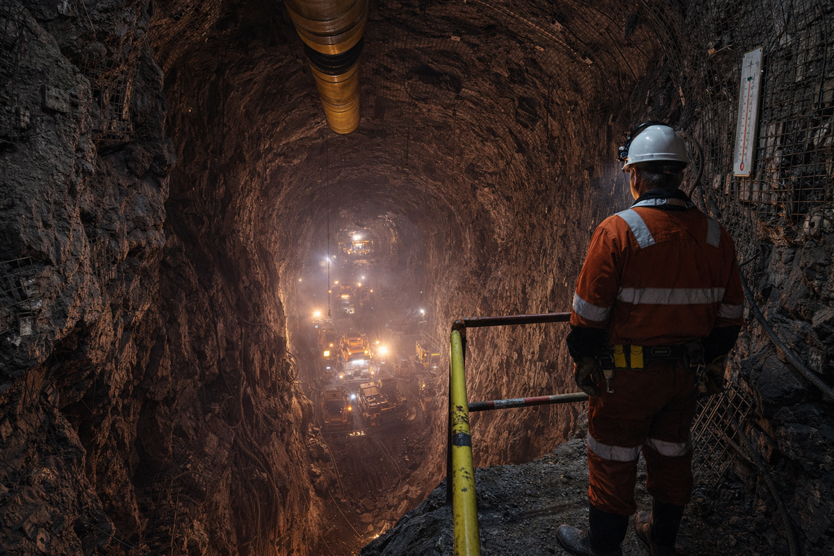 На такой глубине давление и температура становятся серьёзным испытанием. Горная порода вокруг нагревается до значений, при которых находиться без охлаждения невозможно. Пространство превращается в экстремальную среду, где каждый метр требует инженерного расчёта. Это не просто добыча руды, а борьба с физикой глубины.