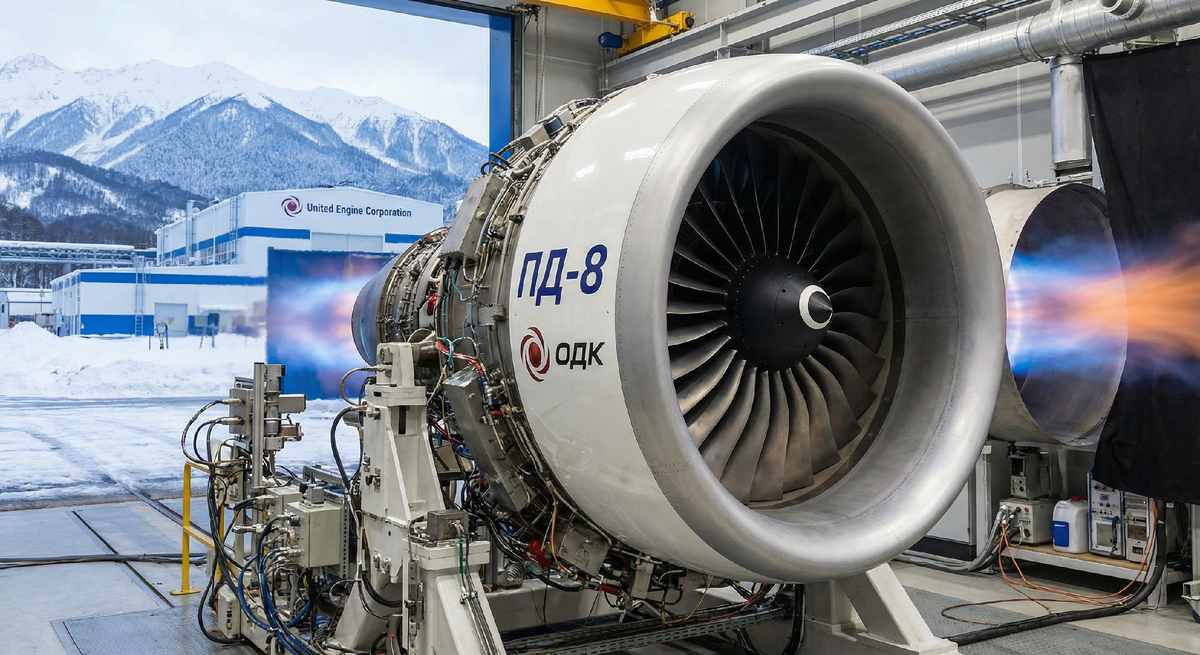 Реверсная тяга — важная составляющая тормозных систем на турбореактивных двигателях нового поколения, которая позволяет существенно уменьшить тормозной путь самолёта при посадке. На двигателе ПД-8, разработанном для импортозамещаемого SJ-100, эту систему успешно протестировали в октябре 2025 года в Жуковском. Реверс тяги — это система, которая перенаправляет реактивную струю двигателя навстречу направлению полёта самолёта, создавая мощное тормозное усилие. Активация запускается сразу после посадки на скорость 100–150 км/ч и продолжается 10–30 секунд, до снижения скорости до безопасного уровня. Эта технология особенно ценна на мокрых, обледенелых или коротких взлётно-посадочных полосах, где обычные колёсные тормоза теряют эффективность. На сухом покрытии реверс поглощает 14–20% кинетической энергии, а в сложных условиях может достигать 70%. ПД-8 — это двухконтурный турбовентиляторный двигатель тягой 14 000 кгс, созданный ОДК специально для SJ-100 в качестве альтернативы SaM146