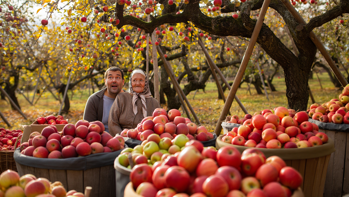 Мы собирали два дня. Игорь таскал вёдра, Алёна сортировала, я снимала с верхних веток. С двенадцати яблонь – восемьдесят два ведра. Восемьсот двадцать килограммов.