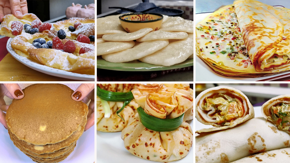 Мои любимые рецепты, без которых не обходится ни одна масленичная неделя. Повторяю их из года в год и все эти блины и блинчика не перестают удивлять. Сразу 6 изумительных идей блинов на Масленицу с начинками и без.