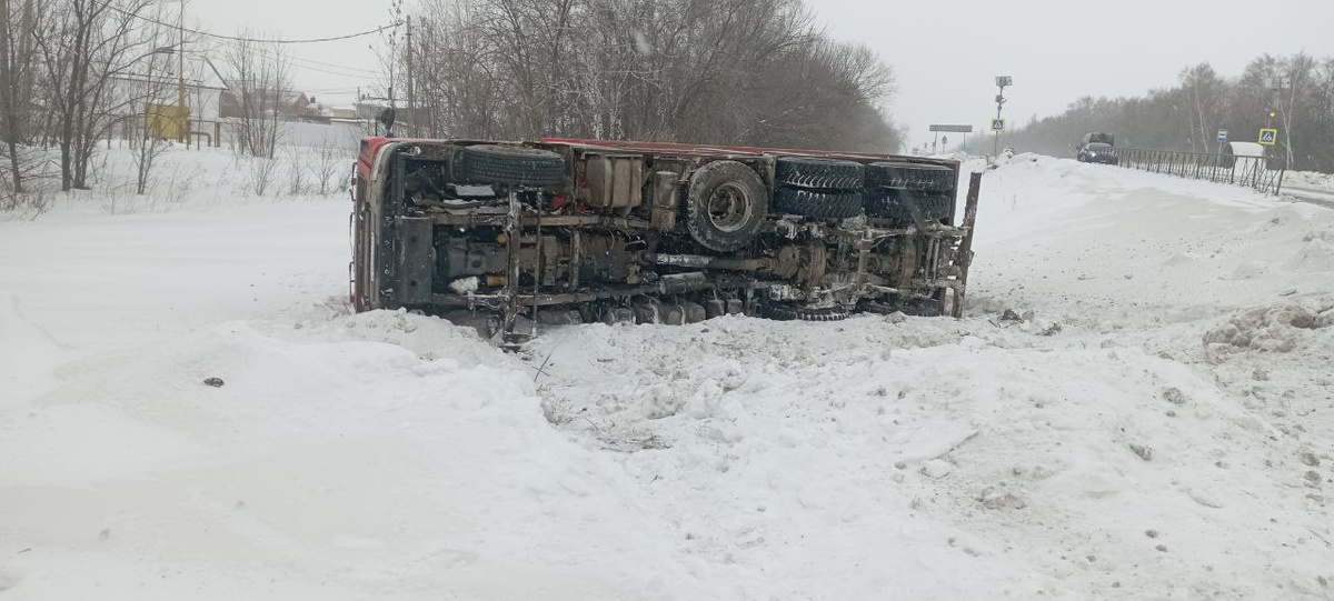 Самосвал МАЗ перевернулся на трассе под Самарой 20 февраля