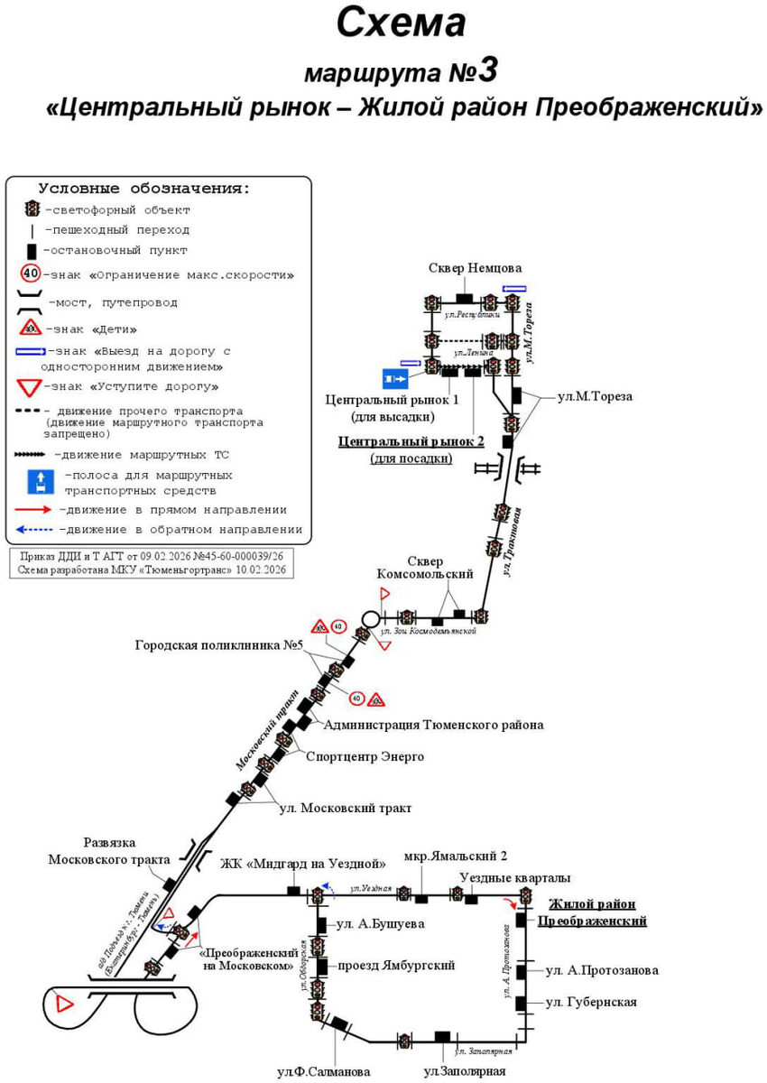 С 1 марта изменится схема движения маршрута регулярных перевозок № 3 «Центральный рынок – жилой район Преображенский». В схему движения включается а/д Обход г. Тюмени, ул. Уездная в прямом направлении, а также остановочные пункты «Развязка Московского тракта», «Преображенский на Московском», «мкр. Ямальский 2», «Уездные кварталы» в прямом направлении. Из схемы движения исключается ул. Закалужская в прямом направлении. Расписание для пассажиров общественного транспорта доступно в разделе «Расписание» на сайте tgt72.ru, в мобильном приложении «Тюменский транспорт», по бесплатному номеру телефона информационно-справочной службы 8-800-250-0722. МКУ «Тюменьгортранс»