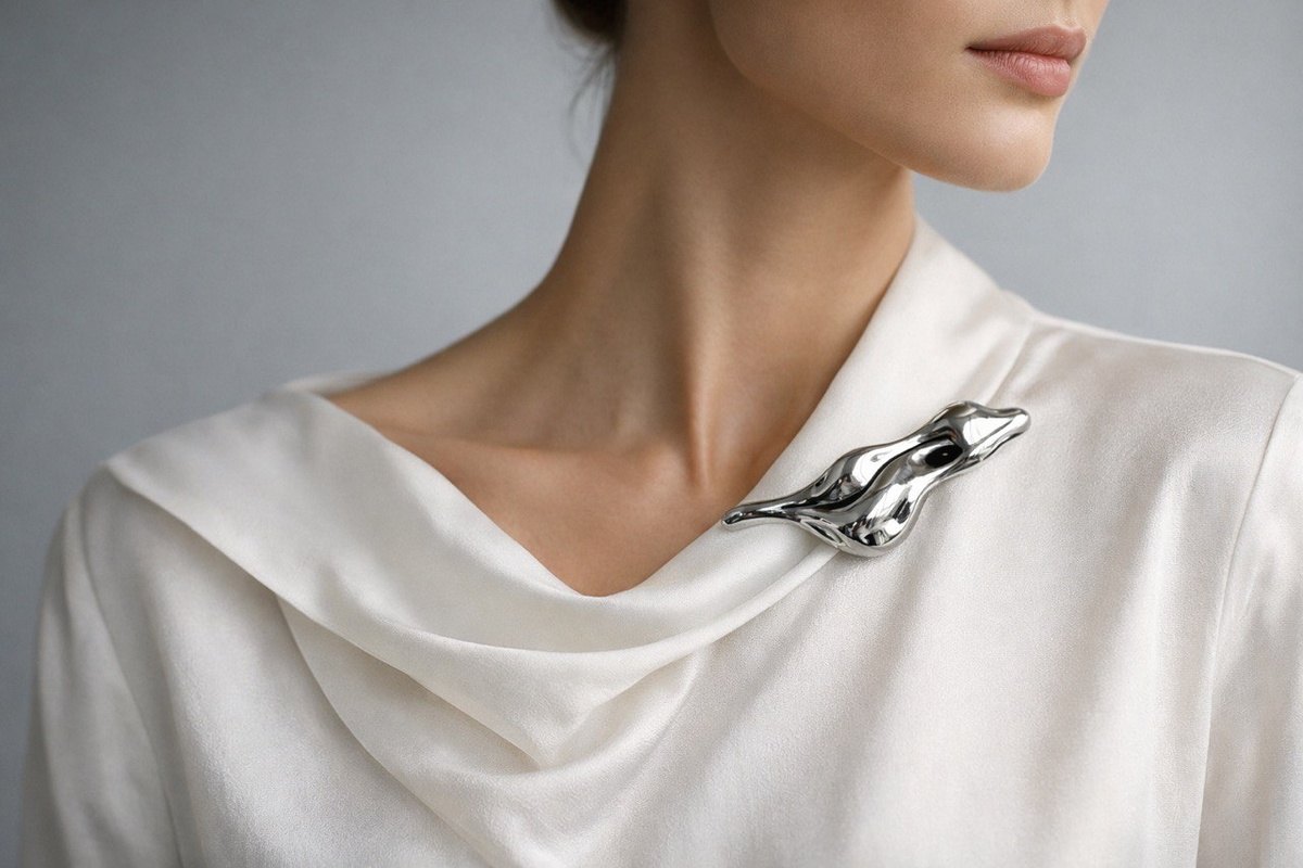 Одна из причин популярности заключается в универсальности. Брошь не требует полной смены гардероба — достаточно одного изделия, чтобы изменить впечатление о привычной вещи. При этом она выполняет не только декоративную функцию, но и практическую: с ее помощью можно фиксировать ткань, менять силуэт или соединять элементы одежды.