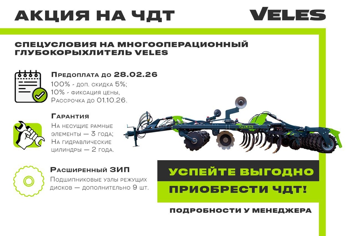 🚜 Акция на ЧДТ — выгодные условия на многооперационный глубокорыхлитель VELES