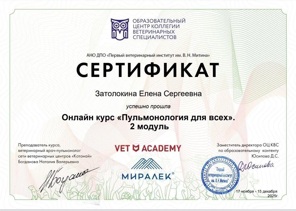🎉🎉🎉Поздравляем нашего доктора - Затолокину Елену Сергеевну- с получением новых знаний в области пульмонологии!