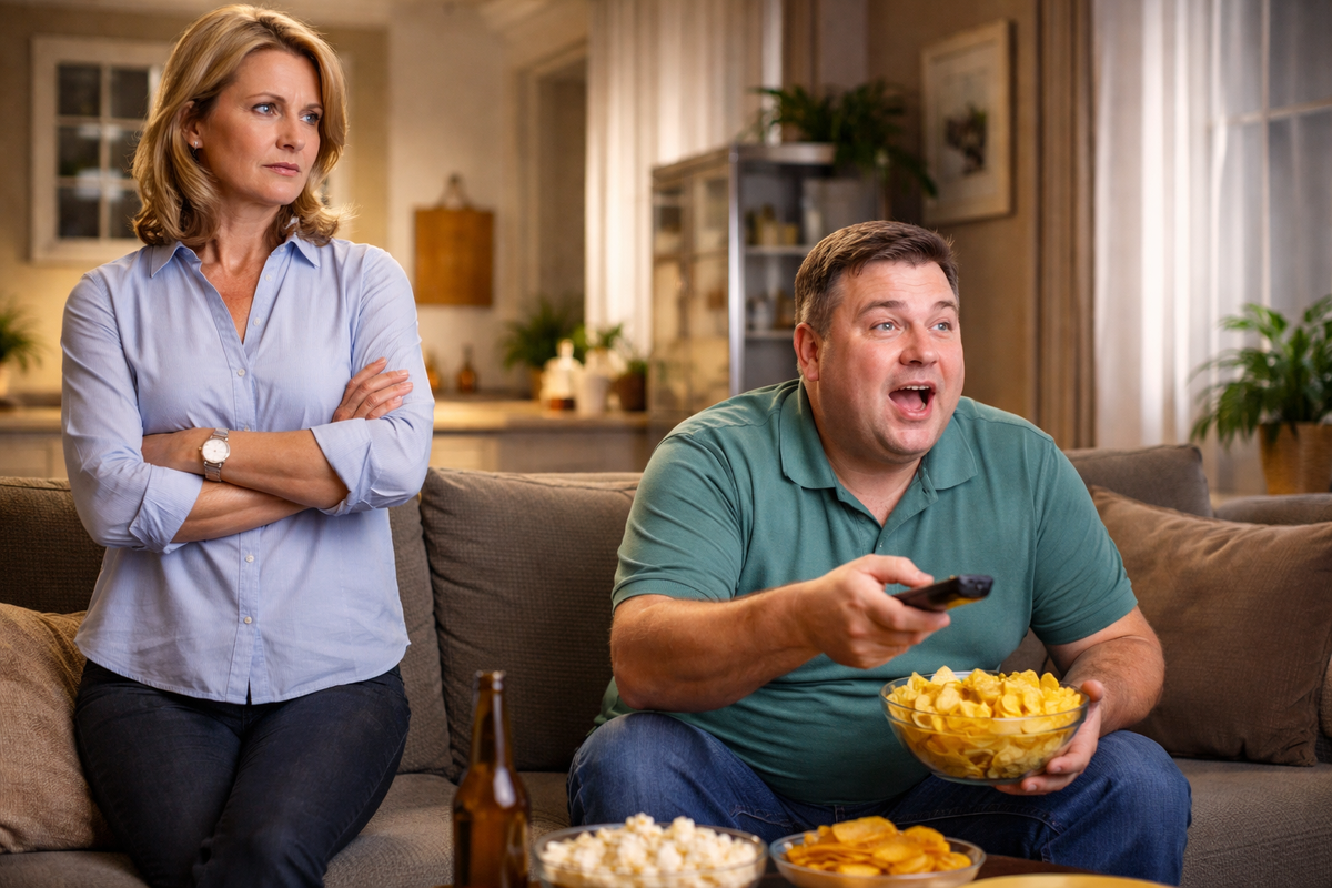 Витя поднял взгляд от дивана. В руках — пульт. На экране — футбол. Всё как всегда.