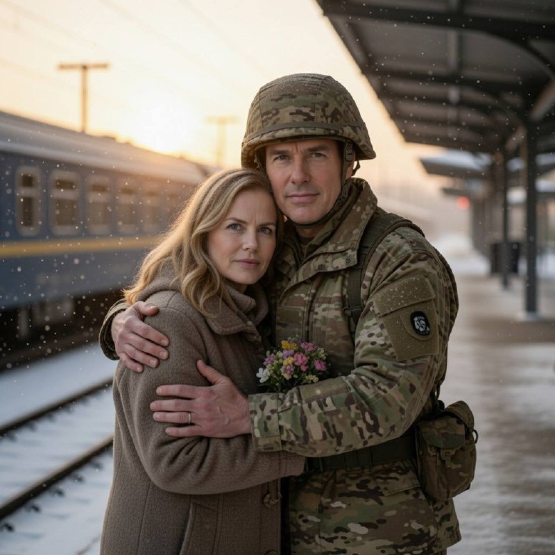 🫂 Режим Творец ✨ Промт 1 ⬇️ Использовать прикреплённую фотографию как основу для внешности. Внешность людей должна быть полностью сохранена с исходного изображения: не менять форму лица, глаз, губ, носа, линию челюсти, возраст, текстуру кожи. Полное сохранение идентичности. Фотореалистичная зимняя сцена на железнодорожной платформе. Два человека стоят в тёплом объятии. Лёгкий снегопад, снежинки в воздухе и на одежде. На заднем плане размытый пассажирский поезд в холодной дымке. Мягкий рассветный свет с тёплым контровым свечением. В руках небольшой букет цветов, внизу кадра дорожная сумка. Атмосфера — тёплая, эмоциональная, искренняя. Камера: 85mm, f/1.8, малая глубина резкости, естественная цветокоррекция, реалистичная текстура ткани, шерсти и кожи. Видны поры, мелкие морщины, естественные несовершенства. Лёгкая плёночная зернистость. Без глянца, без сглаживания. NEGATIVE: пластиковая кожа, бьюти-ретушь, сглаживание, изменение черт лица, омоложение, лишние пальцы, деформация рук,