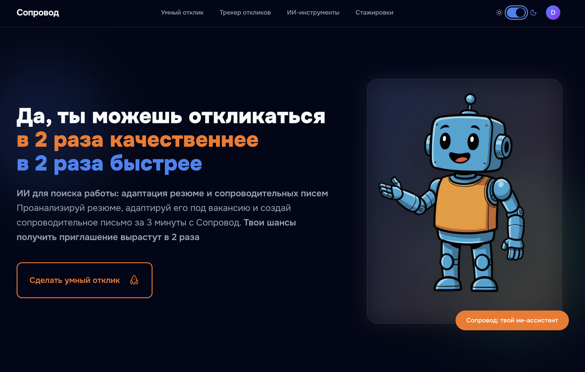 Средний поиск работы в России занимает 2-3 месяца. Покажу как Сопровод сокращает этот срок — разберу полный цикл от резюме до оффера по шагам. День 1. Аудит резюме.